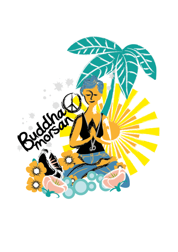 Buddha-morsan vågar följa sina drömmar. Det är inte alltid lätt men hon tränar. När jag blev mamma första gången föddes också Buddha-morsan. Alla mammor vet att den där energin som hovrar på BB kan ljussätta vilken scenshow som helst. Den är lika naturlig som solenergi. Den kraften levde kvar i mig länge och än i dag. Den gjorde att jag blev min egen vägvisare. Jag började se på mitt jobb som yogalärare med helt nya ögon och blev plötsligt galet trött på alla yogisar och träningsgurus som kom med idéer om vad jag skulle göra och inte göra för att må bra. Ofta handlade det om många timmars yoga eller flera timmars smothiefix- och mix för att hitta mig själv. Visst, jag älskar Dalai Lama, han är fantastisk, men ge honom ett riktigt jobb, några ungar och sen kan han skriva en bok om hur man hittar den inre lyckan. I samma veva som min dotter föddes blev jag också en ensamstående morsa. En sån har inte tid för långkok och retreats, kristaller hjälper inte till med att handla och städa. Jag var glad om jag fick gå på toaletten själv. Där och då fick jag bli Buddha-morsan och träna hardcore på allt jag lärt mig om hälsa, mindfulness och yoga. Där fick jag bli min egen guru. Och idag vet jag att det bor en guru i oss alla utan att vi bott i ett Ashram, varit nunna eller har en Ferrari att sälja.